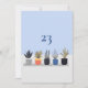 Améliorez vos paramètres de table de mariage ou d'événement avec cette carte de numéro de table botanique élégante. Présentant des illustrations plantes en pots éclatantes sur un arrière - plan bleu apaisant, ce design allie élégance moderne et amour pour la nature. Le numéro de table gras en haut assure une visibilité facile. Idéal pour les mariages dans le jardin, les événements éco-responsables, ou toute célébration à thème botanique.