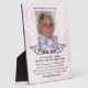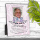 Une façon belle et intemporelle de se souvenir de votre proche avec une plaque photo mémorielle personnalisée. Téléchargez votre propre image et modifiez tout le texte sur le devant pour obtenir un souvenir unique que vous et votre famille chérirez. Le poème sur cette plaque dit : Nous pensons toujours à vous, nous parlons encore de vous, vous n'avez jamais été oublié, et vous ne le serez jamais. Nous vous tenons près de nos cœurs, et vous y resterez, pour marcher et nous guider à travers nos vies jusqu'à ce que nous nous rencontrions à nouveau. Le verset biblique en bas nous rappelle que nous avons de l'espoir, et que nous serons à nouveau unis avec ceux qui sont allés être avec le Seigneur Jésus-Christ.