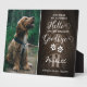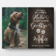 Plaque commémorative pour animaux de compagnie avec un fond en bois rustique, l'initiale et le nom de votre chien, une photo de votre chien ou chat, des empreintes de pattes en forme de cœur, et une citation de sympathie qui dit 'vous étiez mon bonjour préféré, et mon au revoir le plus difficile'.