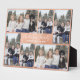 Modèle de photo de famille avec six positions pour des photos. Les photos s'assoient sur un fond métallisé de couleur cuivre. Police manuscrite pour le nom de famille. Beaucoup d'espace pour les noms longs. Modifiez également la saison des fêtes et l'année. Pour personnaliser cette plaque, cliquez sur "personnaliser ce modèle" puis modifiez les champs fournis. Les photos du modèle sont à des fins de démonstration uniquement et doivent être remplacées avant de commander ce produit. Plaque de collage de six photos en rose gold.