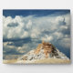Photo de White Dome Geyser dans le parc national de Yellowstone, avec des nuages pleins de pluie dans l'arrière - plan.