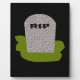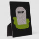Cette magnifique plaque est ornée d'une pierre tombale grise avec RIP dans le texte noir coulant dessus, se tenant sur une parcelle d'herbe verte. L'arrière - plan est noir, et il ne respecte pas cette conception morbide.