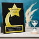 Donnez cette élégante plaque aux employés, au personnel, aux étudiants et aux travailleurs pour un travail bien fait. Customisez facilement en ligne avec vos détails personnalisés. Commandez seulement une ou plusieurs, aucune quantité minimale requise. dispose de la conception de trophée étoile de couleur or sur arrière - plan noir. Idéal pour un cadeau d'entreprise, un prix de service à la clientèle, un prix d'excellence pour les étudiants ou toute autre utilisation!