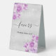 Plaque De Table Anniversaire argent rose violet fleurs faveurs