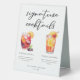 Cet après-midi rafraîchissant signature cocktails panneau de tente avec une simple typographie noire au-dessus de 2 boissons et leurs ingrédients pour votre bar mariage. Un joli dessin au lever du soleil de Sangria et Tequila en été ajoute une touche cool à votre menu du bar. Complétez avec les noms du couple et la date de leur réception.