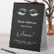 Arrière - plan noire classique et moderne. Personnalisez et ajoutez votre nom, titre, heures d'ouverture. Texte blanc. Décoré d'une paire d'yeux/cils.