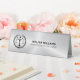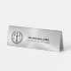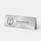Ce design astucieux comprend un logo de bureau en noir sur un arrière - plan en argent métallique et du texte personnalisable en noir.
