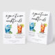 This chic beach signature cocktails paper table tent sign features simple black typography above 2 seaside drinks and their ingredients for your coastal wedding bar. A cute Blue Lagoon and Long Island Iced Tea drawing add a cool flair to your bar menu. Complete with the couple's names and date for their reception.