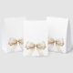 A versatile folded paper table tent with a beautiful illustrated bow. Comes blank so you can write your own text by hand — perfect for food labels, name cards, favor tables, candy buffets, reserved signs and more. A budget-friendly option for First Communion, Confirmation, Sweet 16, Quinceañera, baby showers and birthday parties.
