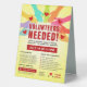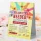 Les bénévoles avaient besoin d'une publicité panneau de tente de table avec des mains colorées avec des coeurs rouges, arrière - plan jaune et typographie audacieuse. Personnaliser signe à votre goût.