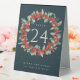 Un panneau de tentes vert foncé pour les numéros de table de Noël/fête de vacances, avec des baies rouges peintes à la main et des eucalyptus disposés en une belle couronne botanique. Tout le texte est entièrement modifiable. D'autres conceptions, des produits de numéro de table et des articles de coordination sont disponibles dans mon magasin.