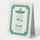 Panneau de bienvenue de mariage au nœud celtique et claddagh vert émeraude et crème. Parfait pour être placé près d'un livre d'or également.