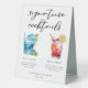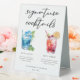 Ce panneau de tente de table de marque côtière chic propose une typographie noire simple au-dessus de 2 boissons balnéaires et leurs ingrédients pour votre bar de mariage de plage. Un joli Blue Lagoon et Dirty Shirley ou un dessin à la cerise ajoutent une touche cool à votre menu du bar. Complétez avec les noms du couple et la date de leur réception.