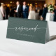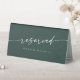 Cette enseigne réservée boho chic vert émeraude mariage est parfaite pour un mariage minimaliste. Le design bohème moderne et moderne de la forêt de chasseurs, sombre et maussade, se compose d'une calligraphie rustique simple au style unique mais classique. Le panneau s'imprime à l'avant et à l'arrière de la carte de tente de table. Personnalisez le panneau de table réservé avec qui il est réservé, si vous le souhaitez.