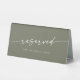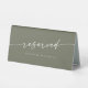 Cette enseigne de mariage vert olive chic et boho est parfaite pour un mariage minimaliste. La tonalité bohème vert foncé bohème moderne est composée d'une calligraphie rustique simple au style unique mais classique. Le panneau s'imprime à l'avant et à l'arrière de la carte de tente de table. Personnalisez le panneau de table réservé avec qui il est réservé, si vous le souhaitez.
