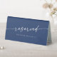 Cette enseigne réservée boho chic royal bleu mariage est parfaite pour un mariage minimaliste. Le design bohème moderne bleu foncé et audacieux présente une calligraphie rustique simple avec un style unique mais classique. Le panneau s'imprime à l'avant et à l'arrière de la carte de tente de table. Personnalisez le panneau de table réservé avec qui il est réservé, si vous le souhaitez.