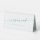 Cette enseigne réservée boho chic turquoise et blanc mariage est parfaite pour un mariage minimaliste. Le design bohème moderne bleu vert et blanc présente une calligraphie rustique simple avec un style unique mais classique qui rappelle la plage côtière et une croisière d'été sur l'océan. Le panneau s'imprime à l'avant et à l'arrière de la carte de tente de table. Personnalisez le panneau de table réservé avec qui il est réservé, si vous le souhaitez.