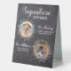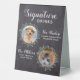 Signature Boissons de vos animaux de compagnie! Inclure votre meilleur chien, meilleur chat et tout animal de compagnie dans votre mariage avec son bar à boissons signature pour vos invités. Parfait pour les amoureux de les chiens, et un bar spécial chien sera un succès à votre mariage. Ardoise de tableau rustique avec feuilles d'eucalyptus. Customisez ce signe mariage animal de compagnie avec votre chien, chat, chiot ou chaton photos préférées, noms et boissons signature!. DROIT D'AUTEUR © 2020 Judy Burrows, Black Dog Art - Tous droits réservés. Rustique Signature Boissons Animaux Mariages Personnalisé 2 Photo Table Tente Signal
