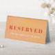 Add a polished finishing touch to your reception with the Bold Modern Chic Orange Sunset Wedding Reserved Table Tent. Featuring a vibrant orange sunset design and sleek modern typography, this table tent clearly marks reserved seating while enhancing your overall décor. Perfect for sweetheart tables, family seating, or VIP guests, it blends bold color with contemporary elegance. A stylish and functional detail for summer, beach, or sunset-themed weddings.