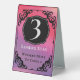 Une élégante carte de table Bunco à apprécier pour vos invités. Aidez les joueurs à passer d'une table à une autre avec ce design facile à préparer et magnifique. Bordure noire élégante, grand numéro de table facile à lire et instructions pour rester en place ou en mouvement. arrière - plan holographique à l'ombre rose et violet. Style de texte moderne. Cherchez les tables 1, 2 et 3.