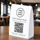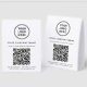 Promote your brand and make customer interactions effortless with this custom QR code paper table tent sign, perfect for salons, spas, restaurants, boutiques, medical offices, hotels, and small businesses. Designed to display your logo, business name, and scannable QR code, this clean and modern tabletop sign helps guests or clients quickly view your services, menu, prices, or booking link with just one scan. Simply add your website or link, and Zazzle automatically generates the QR code, so there’s no technical setup required. Printed on durable, affordable paper, it’s a professional yet budget-friendly option for front desks, counters, or trade show displays. The minimalist black-and-white design ensures your logo and QR code stand out clearly, complementing any brand style or décor. Easily personalize with your logo, address, phone number, website or other text to create a cohesive, on-brand customer experience that looks polished and inviting.