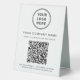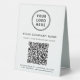 Drive instant engagement at your counter, table, or reception area with this custom QR code table tent sign. Designed with a clean white background, modern typography, and space for your logo and business name, this professional tabletop display makes it easy for customers to access your services, pricing, or website in seconds. The scannable QR code offers a seamless, contactless experience -- perfect for restaurants, cafés, salons, retail shops, medical and dental offices, hotels, events, and pop-ups. Simply enter your website or link, and Zazzle automatically generates the QR code for you, ensuring reliable scans and a polished presentation. Use it to share menus, service lists, booking pages, promotions, or important business information without printed handouts. Sturdy and freestanding, this table tent sign enhances your brand visibility while keeping your space uncluttered and on-trend.