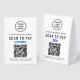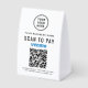 Make cashless payments simple and seamless with this customizable Business Logo Venmo Zelle QR Code Scan To Pay two-sided paper table tent sign. Designed for salons, boutiques, cafés, vendor booths, and small businesses, this clean and modern tabletop display makes it easy for customers to send payments instantly using your QR codes. Add your business logo and your name, contact details, website, or other text for a polished, professional look that elevates your checkout area.