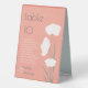 Guidez vos invités à la bonne table à votre mariage, à votre dîner ou à toute autre occasion spéciale avec ces tentes de table de haute qualité! Cette tente de table mariage de 6" x 8" moderne et les cartes de noms d'invités présentent un design floral minimaliste sur un arrière - plan rose corail avec en tête de table et numéro en lettres modernes en grandes lettres. Ajoutez vos propres numéros de table et noms d'invités. Les noms peuvent être enlevés ou modifiés à un nombre différent de invités, si vous le souhaitez. Imprimé à l'avant et à l'arrière. Disponible en 4 tailles - En polystyrène plastique blanc.