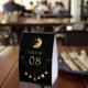 Elegant wedding table number featuring a beautiful illustration showing moon phases and modern typography.