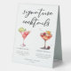 Ce panneau de tente de table à cocktails sophistiqué présente une typographie noire simple au-dessus de 2 de vos boissons préférées et de leurs ingrédients pour votre bar mariage côtier. Un dessin chic Cosmopolitan et Cherry French 75 ajoute une touche ludique à votre menu du bar. Complétez avec les noms du couple et la date de leur réception.