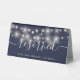 Doté de jolies lampes à cordes, cet élégant panneau bleu marine réservé est parfait pour votre célébration mariage. Conçu par Thisisnotme©