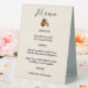 Panneau de menu mariage de automne pour les tables de réception. Couleur blanc cassé, dressé, menu recto verso à la décoration simple et gourde. Simple et parfait pour une fête d'automne. "Menu" est le titre, avec un paragraphe pour lister les sélections alimentaires. Le texte et la conception sont les mêmes de part et d'autre. Installé sur des tables de réception où tous les clients peuvent voir l'offre.