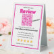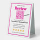 Encouragez les clients heureux à laisser un commentaire avec ce panneau de demande d'avis rose vif. Conçu pour l'image de marque moderne et la promotion des petites entreprises, cet écran accrocheur dispose d'un code QR personnalisé avec un appel direct à l'action pour laisser un avis 5 étoiles sur des plateformes comme Yelp ou Google. Idéal pour les salons, le toilettage des animaux, les boutiques, les cafés ou les studios qui cherchent à accroître la visibilité grâce à des opinions positives de la clientèle. Un outil de marketing élégant et efficace qui permet aux visiteurs d'évaluer facilement votre boutique avec un simple balayage rapide.