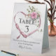 Plaque De Table Cœur de mariage Ruban rose avec rose
