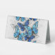 Vertical composition of réalistes, blue and white morpho butterflies on gray textured background. Morphine bleu.