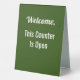 Vous pouvez modifier le texte d'affichage blanc pour créer des messages personnalisés appropriés pour votre entreprise. Le côté rouge dit : Désolé, ce compteur est fermé. Le côté vert dit : Bienvenue, Ce Comptoir Est Ouvert.