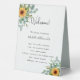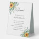 Un programme de mariage moderne, élégant, chronologie. Un arrière - plan blanc chic. Décoré de tournesols, de verdure vert d'eau, d'eucalyptus. Personnalisez et ajoutez vos noms et les détails du mariage. Lettres de couleur noire. Si vous avez plus de texte, il est possible de réduire l'espace de ligne.