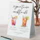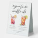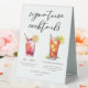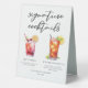 Ce panneau de tente de table de cocktails chic et design présente une typographie noire personnalisée au-dessus de 2 boissons et leurs ingrédients pour votre bar mariage. Un joli temple de Shirley et un dessin de thé glacé de Long Island ajoutent une touche cool à votre menu du bar. Complétez avec les noms du couple et la date de leur réception.