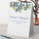 Améliorez votre décoration de réception de mariage avec cette Tabletop Sweet Traitements moderne et élégant Signez avec un flair méditerranéen. Ce panneau magnifiquement conçu se marie harmonieusement à votre zestin et à votre thème vibrant, ajoutant une touche de luminosité à votre table. Explorez la collection pour un mariage à thème magnifique.