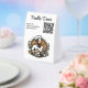 This beautiful paper table tent features an illusrtration of a chef cooking with a ribbon below him, stars above him and laurel leaves on the sides. Above is the name of the restaurant/ business. Below that is a message and a QR code for customers to scan for the menu. The text can be changed to suit your business needs. You can also replace the QR code and illustration with your own QR code and illustration/photo. You can also change the font style, size and colour. The background colour can also be changed. This paper table tent can be used for any business! Simply change the text, QR code and picture to suit your need!