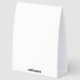 This cute and modern paper table tent features the name of the pizza/ restaurant, illustrations of things associated with a pizzeria/ restaurant busines with a chef in the middle. At the bottom is a message, a field for a website and a field for a social media link. There's also an editable QR code that you can switch out for your own. The text on the front is editable so change the words as well as the font style, size and colour.