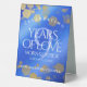 Ajoutez une touche spéciale aux célébrations du 9ème anniversaire du mariage lapis lazuli avec cette élégante tente de table ! Des lettres élégantes avec des confettis hexagonaux patinés en pyrite sur un arrière - plan bleu azur et moucheté ajoutent une touche mémorable à cette occasion spéciale et à cette étape importante. Customisez avec les noms des couples, les dates du mariage et les messages de félicitations. Remarque : cette conception a été optimisée pour une utilisation verticale du portrait. Design © W.H. Sim. Voir plus sur zazzle.com/expressionsoccasions