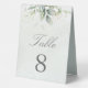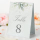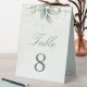 De beaux numéros de table mariage avec des eucalyptus aquarelles et des feuilles d'or. Un choix parfait pour les mariages extérieurs.