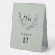 Élégant Monogramme Sage Mariage Numéro de table Tente Signe... L'avant et l'arrière de notre monographie de numéro de table de mariage sont ornés d'une élégante couronne de laurier botanique feuilleté affichant les initiales de la mariée et du marié dans une typographie romantique serif, suivie par le numéro de table numérique détail... le tout sur un arrière - plan vert sage branché. Tous les textes des deux côtés du signe peuvent être facilement révisés sur le modèle de personnalisation avec une seule entrée.