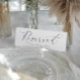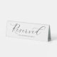 Cette élégante tente réservée est parfaite pour s'installer sur des tables, des chaises ou des bancs. Il dispose d'un script de calligraphie doux et luxueux. Vous pouvez modifier la ligne pour indiquer à qui le siège est réservé ou le supprimer si vous le souhaitez. Il est en noir et blanc. Mariage simple, moderne et élégant réservé panneaux de tente de table.
