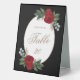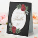 Belles vaporisations florales aquarelle... avec de magnifiques pivoines rouges, une verdure luxuriante, l'eucalyptus et le souffle du bébé... entourent un cadre ovale avec votre numéro de table en écriture typographique or. Les riches tons rouges et verts des fleurs mettent en valeur les élégants arrière - plans noirs, blancs et dorés. Ajoutez vos propres détails en suivant le lien "Personnaliser". Si vous désirez obtenir de l'aide, veuillez me contacter par courriel ou par courriel à Zazzle. susanmingaydesigns@gmail.com