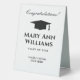 Élégant panneau supérieur de table pour la fête de remise des diplômes. Personnalisez avec le nom personnalisé et l'année de classe. Logo de casquette de goût académique avec typographie classe. Idéal pour signer des livres d'invités, laisser des cadeaux, des notes, etc. Impression recto verso.