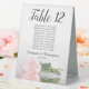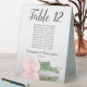 Ces panneaux de numéro de table de tente ne sont pas seulement beaux, ils incluent même une liste de noms pour les invités à chaque table, ce qui permet à vos invités de trouver facilement leur siège à votre réception de mariage. Le design est à la fois élégant et romantique, avec un rose simple rose vif couché sur son côté réfléchissant dans l'eau avec des vagues et des ondulations. Le titre est en calligraphie de script en dentelle avec des chiffres en gras afin que vos invités puissent facilement trouver la bonne table. Il y a de la place pour les noms du couple et la date du mariage.