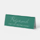 Réservez une table d'accueil de mariage pour la famille du marié avec ce panneau de tente couleur vert émeraude avec un script blanc stylisé. L'impression se fait d'un côté seulement.