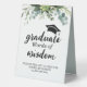 Eucalyptus Graduation Party Guest Conseils Table Tente affichage des panneaux. La famille et les amis fournissent des mots écrits de sagesse pour le nouveau diplômé. Une activité de fête créative et de garde. Facile à customiser.